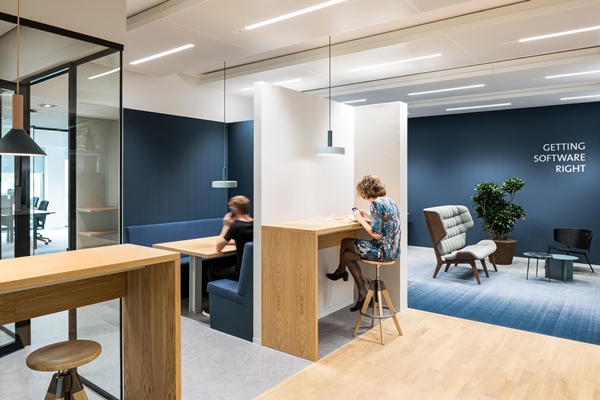 Het kantoor nodigt uit tot flexibel werken door de verscheidenheid aan werkplekken. Met verschillende open en privé zones is er een divers werklandschap ontstaan. Interactie tussen werknemers is geoptimaliseerd door een centrale routing en het plaatsen van de boardroom op een centrale plek. Deze boardroom is voorzien van 4 deuren zodat er een doorloop ontstaat tussen de klant- en werkzones. In deze opstelling wordt hij gebruikt voor informeel of kort overleg.