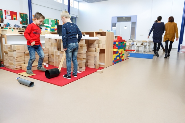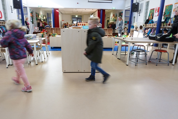 ‘Via Petra en Harry was ons in 2017 ter ore gekomen dat Forbo Eurocol een nieuwe, innovatieve gietvloer op de markt had gebracht. Wij waren zeker toe aan iets nieuws en ‘innovatief ‘ past ook mooi bij de vernieuwende benadering van kinderopvang en onderwijs van onze stichting. Na de bezichtiging van een ‘voorbeeldschool’ in Culemborg waren wij direct verkocht.’ Als het aan Miriam had gelegen, was de LiquidDesign-vloer er in 2017 al gekomen, maar voordat het project kon beginnen, zou er eerst nog heel wat water door de Maas stromen. In de zomer van 2018 werd de megaklus geklaard.
