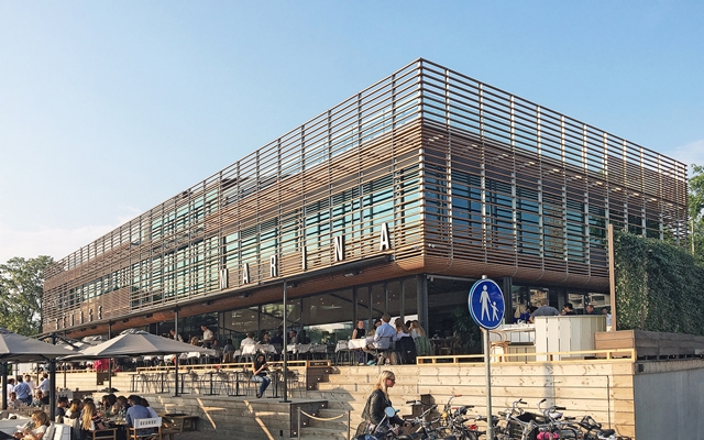 Het stadshavengebouw staat op unieke locatie direct aan de Amstel en het stadspark Amstelkwartier. Horeca, multifunctionele ruimte, parkeren en een woning worden onder één dak samengebracht.
