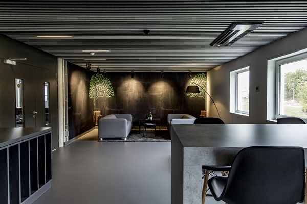 Het kostte Bert niet veel moeite om ook de klant warm te laten lopen voor LiquidDesign. ‘Creative Director Olaf Leonhardt van Chiyoda vond het meteen prachtig. De industriële, maar tegelijk warme uitstraling van de vloer paste perfect bij het nieuwe interieur dat we samen voor ogen hadden. Samen met de het geluiddempende viltstrokenplafond, de basic afgewerkte wanden en de geëxposeerde panelen, prints en het meubilair vormt het één stijlvolle, uitgebalanceerde ruimte. En door de gekozen LiquidDesign-kleur 35020 Lead springen alle getoonde producten van Chiyoda er mooi uit.’