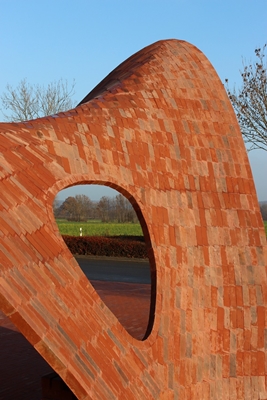 Een zo dun mogelijke en zodoende efficiënte schil, dat was de doelstelling bij het paviljoen van baksteenfabrikant Hagemeister in Nottuln. Werkmaat bij deze vingeroefening: de klassieke baksteen. Op een draagconstructie uit hoogvast fijnkorrelig beton met een wapening uit koolstofvezel kreeg het paviljoen een schil van steenstrips. Extra eis bij deze exercitie in rank bouwen met baksteen: de met koolstofvezel versterkte betonkern – nodig om de krachten in de constructie op te vangen – mocht in het paviljoen niet zichtbaar aan de oppervlakte treden. Uiterlijk mocht het paviljoen uit niets anders dan baksteen lijken te bestaan.