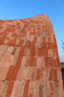 In het paviljoen van Hagemeister zorgen juist de steenstrips voor een heel andere oppervlaktesfeer en beleving, stelt Kleppe: "Spannend is dat het een traditioneel gewelf is, met de charme van de handformaat steen – maar met een extreem geringe dikte."