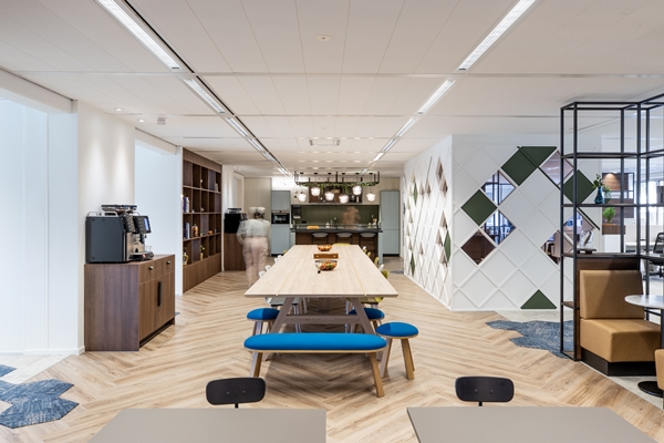 In dit speelse kantoor te Hilversum staat het `thuis' gevoel centraal. De gedachtegang achter het ontwerp was om een ruimte te creëren die zakelijk is en tegelijkertijd gezelligheid uitstraalt. Door het hanteren van de activity based working methode zijn er verschillende sferen ontstaan. Bij dit principe staan flexibiliteit, transparantie, samenwerking en efficiëntie centraal. Organisaties die activity based werken, stimuleren medewerkers om zich te verplaatsen tussen verschillende werkomgevingen en met verschillende medewerkers samen te werken. Hierdoor doen medewerkers veel nieuwe inspiratie op. De lunchruimte waar ook flexibel gewerkt kan worden dient als ontmoetingsplek en is dan ook letterlijk het hart van dit kantoor die beide vleugels met elkaar verbindt.