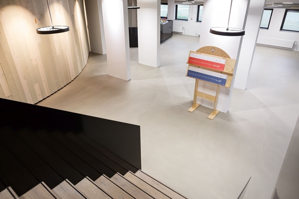 . Een egalisatielaag die in diverse kleuren en intensiteiten kan worden aangebracht. Daarnaast werd in het gebouw ook met hout gewerkt en het interieur werd met zorg gekozen.