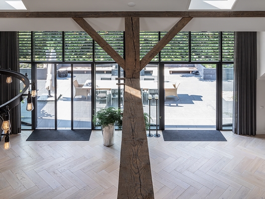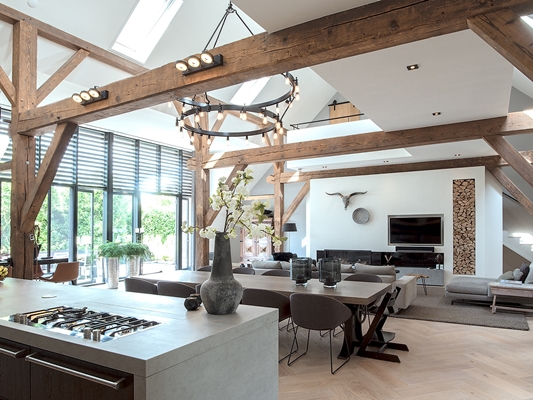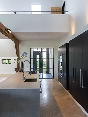 De wens was er om de voormalige koeienstal grondig aan te pakken en daar het hart van de boerderij van te maken. Dit alles met behoud van oude elementen in combinatie met moderne materialen.