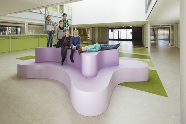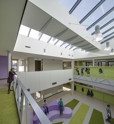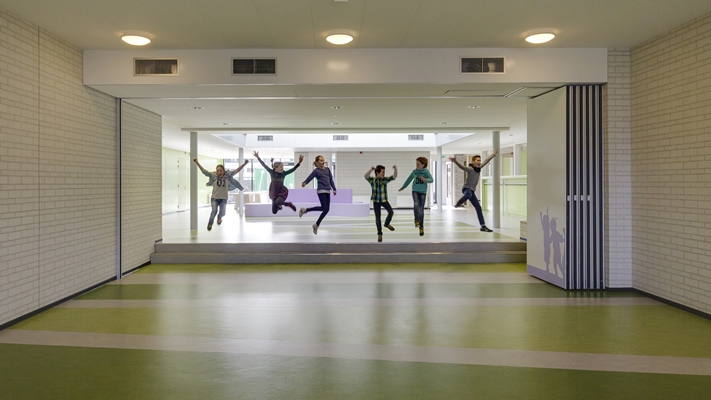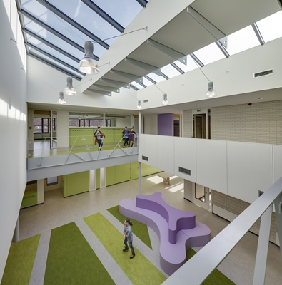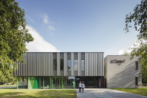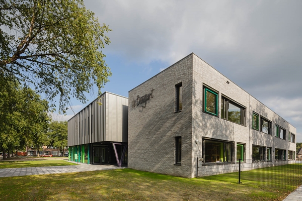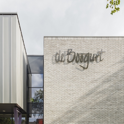 De Brede School “de Boogurt” te Budel is centraal gesitueerd in een ruime en groene omgeving. De school is vormgegeven rondom een inspirerende centrale ruimte die op overtuigende manier het hart vormt van het gebouw.Hier worden alle belangrijke ruimtes van de twee verdiepingen op een of andere wijze met elkaar in verbinding gebracht. Dit zorgvuldig vormgegeven centrale gebied heeft een open karakter en heeft een multifunctionele betekenis voor de school. Transparantie, multifunctionaliteit en verbinding zijn sleutelwoorden bij het ontwerp voor dit kindcentrum.We hebben ons tot doel gesteld om een gebouw te ontwerpen waar kinderen zich thuis kunnen voelen. Bewust is er door gebruik te maken van maar enkele kleuren en een heldere structuur een rustig beeld geschapen. Hiermee is er voor kinderen een plek gecreëerd, waar ze zich veilig en vertrouwd kunnen voelen in een sfeervolle omgeving.