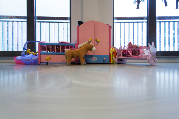 In de gymzaal ligt een speciale EPI-sportvloer. In de entree, het restaurant, in de toiletten en in de kindervertrekken ligt de EPI Superbase 400 NV. In het toilet lopen de vloeren een klein beetje op de wand door, zodat ze nog eenvoudiger schoon te houden zijn. Louise de Ruiter, oprichtster van Kids Lodge: “Achteraf had ik dat wel in het hele gebouw willen hebben. Het is ideaal.”
