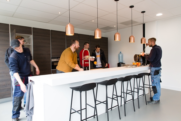 Esdec koos er met het oog op de tijd en de kosten voor de bestaande vloeren te renoveren. Een EPI 600 MP vloersysteem is zeer geschikt in ruimtes waar design en high traffic samenkomen. In de gangen, kantoren en kantine werd deze naadloze en vloeistofdichte vloer aangebracht. Voor de pantry en de toiletgroepen viel de keuze op EPI Corestone. Dit ijzersterkte betonlook product is over de oude tegels op de vloer en de wand aangebracht.