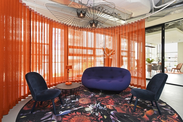In totaal zijn er voor de verschillende ruimtes vier sferen gerealiseerd. De entree is expressief en kleurrijk en door de gekozen ronde vormen ook meteen zeer uitnodigend. Voor de kantoorruimte is juist gekozen voor zacht en ingetogen zodat er in alle rust en concentratie kan worden gewerkt. De uitermate uitnodigende directiekamer is onstaan door de combinatie van huiselijke meubels met warme tonen. In de ruimtes waar medewerkers en bezoekers elkaar ontmoeten, vormen de kleuren van het bedrijf de basis en het verschillende materiaalgebruik voor de dynamische en speelse omgeving.