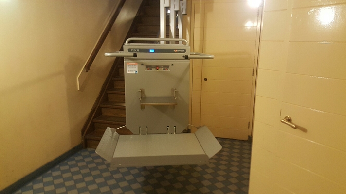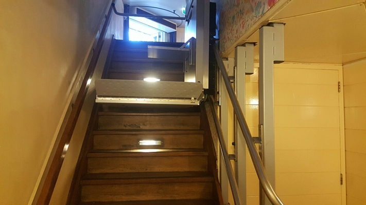 In het theehuis Rhijnauwen gelegen bij Bunnik aan de Kromme Rijn hebben we deze platformlift geplaatst. Omdat de toiletten zich op de beneden-etage bevinden, wordt de platformlift met grote regelmaat gebruikt en is het restaurant geheel rolstoeltoegankelijk. Het platform is tevens uitgerust met een opklapbaar zitje .