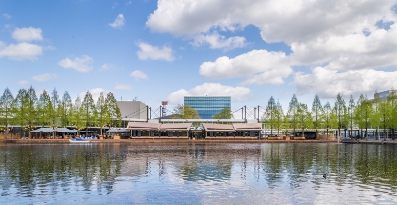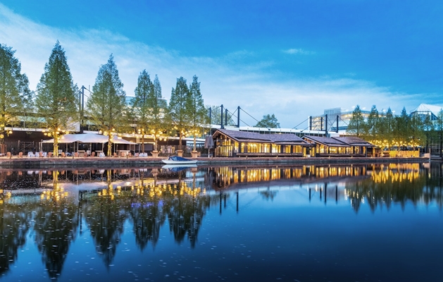 bestaat uit een groot paviljoen aan de oostzijde van het water en verschillende kleinere paviljoens, verbonden door twee zandstranden. De totale oppervlakte is gelijk aan die van de oude gebouwen, maar door efficiënter gebruik van de ruimte is er plaats voor meer mensen.