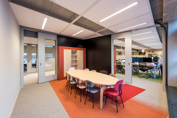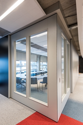 ‘Er werken zo’n dertig deskundigen bij SWV. Zij zijn afwisselend op en buiten kantoor werkzaam. Daarnaast wordt het kantoor regelmatig bezocht door ouders, begeleiders, directies van scholen en andere deskundigen. Deze gebruikers zijn stuk voor stuk enthousiast over de flexibel in te delen ruimten. Het werkt zoals het moet werken. Gevoelige informatie blijft binnenskamers, niemand hoort iets als hij of zij langs een van de ruimtes loopt.’