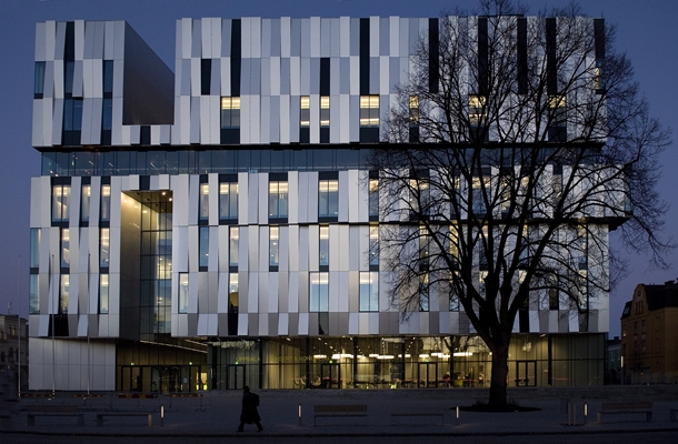 Designed as an identity creating building in the new part of the city, Uppsala’s Concert & Congress Hall elegantly interplays with the historical surroundings of Uppsala. A vertical cleft in the building provides public access from two sides, from the old historical town and from the modern Vaksala Square, and from the top of the building you have a spectacular view over the city. “The building interacts with the historic skyline of Uppsala and adds a new contemporary chapter to the city’s history”, said Klavs Holm Madsen, constructing architect and project manager, Henning Larsen Architects. Uppsala’s new concert hall now stands as a ful?lment of the vision the city had for their building.