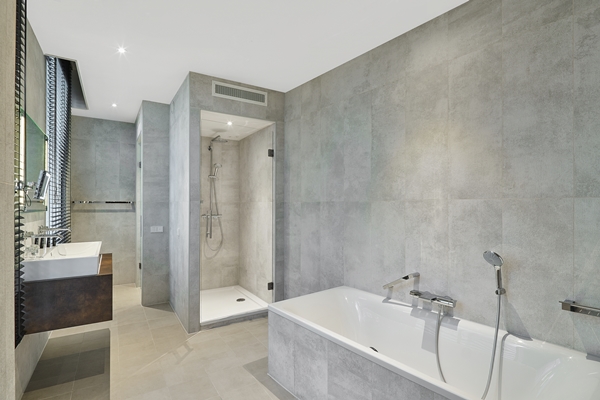 Badkamer met Euphoria XXL douchesysteem, Essence wastafelmengkraan en Grohtherm 2000 badthermostaat