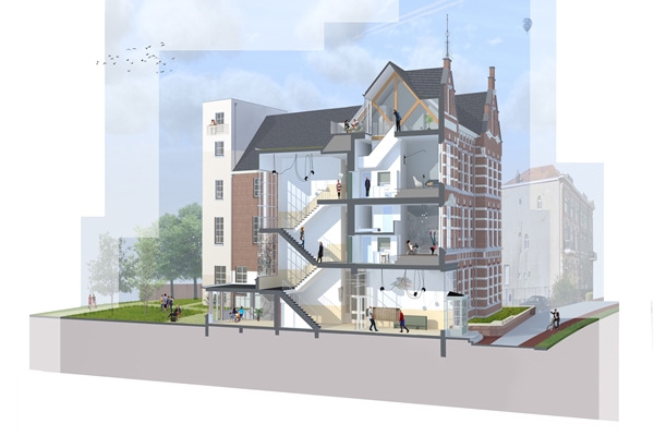 De aan de achterzijde gelegen recentere aan- en uitbouwen zijn afgelopen jaar gesloopt om ruimte te maken voor nieuwe ontwikkelingen en het 19e eeuwse monumentale pand wordt getransformeerd naar een woongebouw.