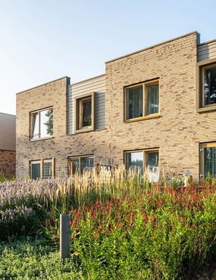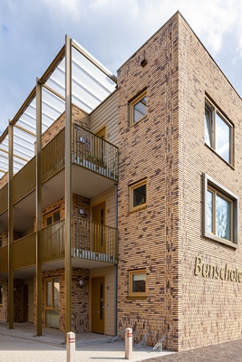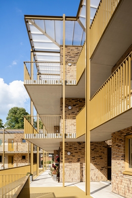 De gevels aan de buitenzijde van het complex zijn pandsgewijs opgebouwd en ingesnoerd, zodat een mooie vriendelijke ritmering ontstaat. Aan de binnenzijde wordt een groene woonsfeer gecreëerd door ruime dekken en galerijen met frames, waarlangs het groen vanuit het souterrain omhoog kan groeien.