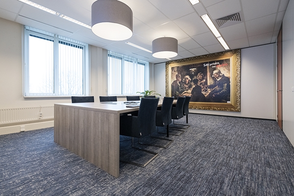 Waar tijdens het ontwerpproces ook goed naar is gekeken is de duurzaamheid van de vloerbedekking. Wijtze Postma, projectadviseur bij Noordhuis thuis op kantoor: “Circulaire producten hebben voor mij absoluut de voorkeur boven producten die niet opnieuw kunnen worden gebruikt. DESSO Jeans, het tapijt dat we hebben geselecteerd voor de vloer, heeft het Cradle to Cradle® Zilver certificaat, wat betekent het product voldoet aan strenge eisen op het gebied van milieu en gezondheid. Agrico gaf aan dat deze kwalificatie goed past bij het duurzaamheidsbeleid van de organisatie.”
