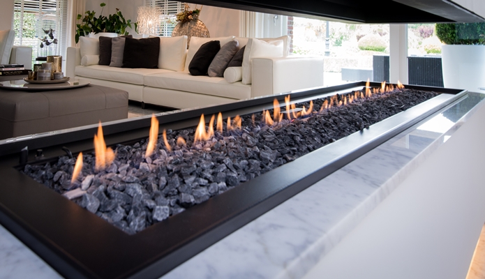 Doorkijk haard, open vuur
