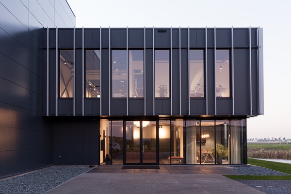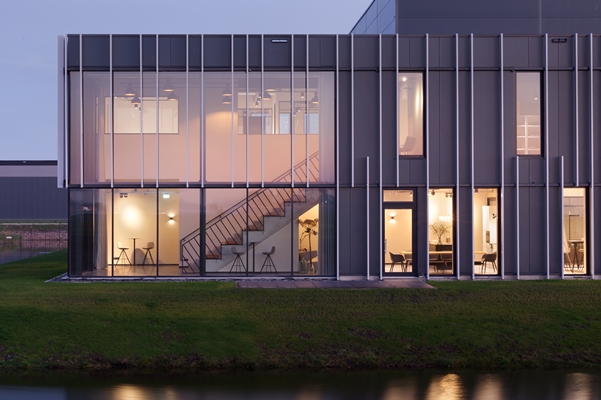 Vanuit het gehele kantoorgebouw, gelegen op een speciaal aangelegd eiland, is er contact met het imposante, uitgestrekte polderlandschap.