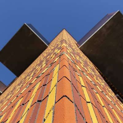 Metselwerk is voor dit nieuwbouwproject door onvermijdelijke scheurvorming een onwenselijk gevelmateriaal. Om een duurzaam doch esthetisch verantwoord en uitnodigend gevelbeeld te realiseren, is gebruik gemaakt van STO-Ecoshapes: stucvormen op basis van minerale componenten, die dankzij hun duurzaamheid, veelzijdigheid en onderhoudsarme karakter een bijzonder geschikt alternatief bleken. In maar liefst 270.826 afzonderlijke stukken zijn deze STO-Ecoshapes in kleurrijke patronen aangebracht op het externe isolatiemateriaal van het gebouw. Naast aardbevingsbestendig zijn Ecoshapes, ten opzichte van meer conventionele gevelmaterialen, aanzienlijk minder belastend voor het milieu.