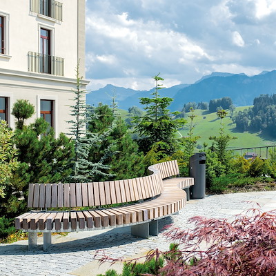 Hoog op de Bürgenstock ontmoeten tegenstellingen elkaar: het rustieke landschap komt er samen met moderne architectuur, geschiedenis met de 21e eeuw, natuurlijke vormen met geometrische. Te midden van het berglandschap benadrukken producten uit de Rough&Ready en de Solid Series van Streetlife deze contrasten met behoud van een visueel aantrekkelijke uniforme uitstraling.