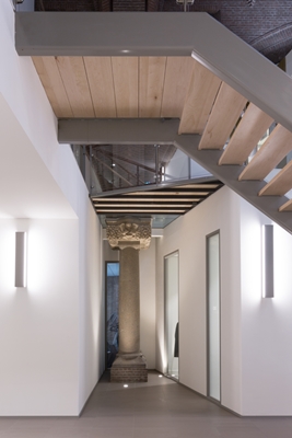 Er is gekozen voor een nadrukkelijk contrast tussen het zware, donkere bestaande metselwerk en de wit gestukadoorde toevoegingen. Verbindende elementen zijn de gouden of Gulden behangen wanden en plafonds. Deze zorgen ervoor dat het geheel niet te klinisch oogt, zijn een knipoog naar het verleden en tevens naamgever van het plan. Bijzondere monumentale elementen zoals de natuursteen kolommen en ingemetselde kerkelijke ornamenten zijn behouden en zichtbaar gemaakt. In de bestaande kerk was niet voldoende daglichttoetreding aanwezig voor het maken van goede werkplekken. Vandaar dat er op de begane grond gevelopeningen zijn toegevoegd. Deze zijn contrasterend vormgegeven met de bestaande gevelopeningen doormiddel van zinken kaders. Ter plaatse van praktijkruimtes op de verdiepingen is het niet monumentale gekleurde glas vervangen door helder isolatieglas. Hiermee is de daglichttoetreding verhoogd en de isolatie verbeterd.