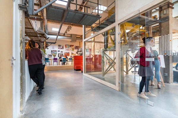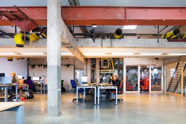 Voor hun nieuwe kantoor wensten zij een “echt kantoor” met verschillende plekken voor overleg, lunch, concentratie, bellen en ontspanning in een open geheel. In het ontwerp hebben wij de kwaliteiten van het industriële en open karakter van de ruimte behouden en benadrukt. De scheidingswand deelt het kantoor op in een ruimte voor samenkomst en ontspanning en een ruimte voor vergaderen en werken. In de wand van playwood en glas is tevens de garderobe en plantenwand geïntegreerd. Om de kosten laag te houden is gebruik gemaakt van circulaire materialen en hergebruikt meubilair. Het ingetogen maar kleurrijke interieur typeert de organisatie.