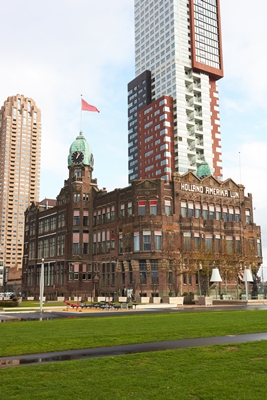 Holland Amerika Lijn. De opvallende woorden op de gevel van Hotel New York op de Kop van Zuid in Rotterdam zijn nog altijd prominent aanwezig. Niet zomaar. Ze vertellen alles over de geschiedenis van het gebouw, die teruggaat tot begin vorig eeuw. In 1901 opende het kantoor van de maatschappij die jarenlang een scheepvaartverbinding onderhield tussen Nederland en de Verenigde Staten. In 1908 kreeg het gebouw een magazijn aan de achterzijde, negen jaar later gevolgd door twee torentjes en een nieuwe gevel. Die zijn tot op de dag van vandaag beeldbepalend. Dankzij de opkomst van de luchtvaart verloor het gebouw weliswaar zijn functie, maar het staat nog altijd fier overeind. Sinds 1993 biedt het gebouw op de Wilhelminapier onderdak aan Hotel New York.
