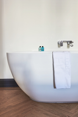 De 27 kamers in de achterbouw van Hotel New York op de Kop van Zuid in Rotterdam zijn onlangs grondig vernieuwd. Naast een nieuwe badkamer kregen ze onder meer een nieuwe vloer. Gekozen is voor Studio Moods Herringbone Slim Laurel Oak. Niet alleen sluit de uitstraling van de vloer volgens interieur architect Ethien Duy Pham van WestCord Hotels perfect aan bij de architectuur van het gebouw, het duurzame karakter maakt de vloer ook nog eens geschikt voor intensief gebruik.