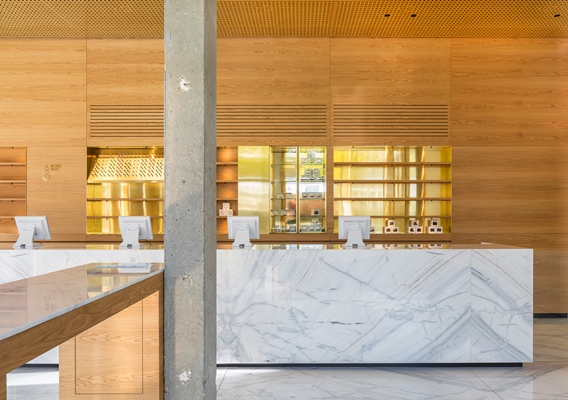 With its interior design we take a new step in the development of Boerenjongens’ brand identity, by taking their established classical elements and transforming them into a more contemporary design language. The main ingredients still are the same: marble, oak wood and brass, but are applied with minimalistic detailing and with even more meticulous attention to detail. The rich and glossy interior is in stark contrast to the rugged exterior of the building and its industrial surroundings. It became a shiny and striking new destination for customers from in and around Amsterdam.