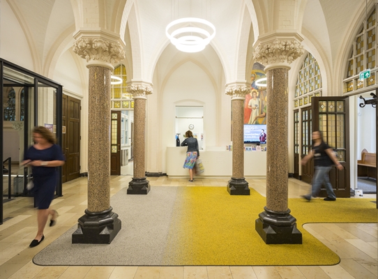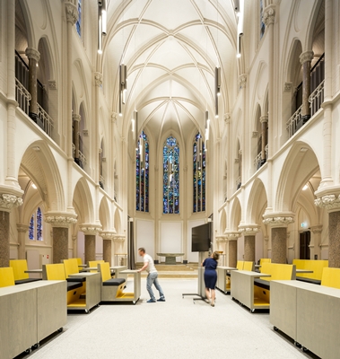 In de centraal gelegen kloosterkapel is een grote collegezaal ingericht die plaats biedt aan 180 studenten en die met door BiermanHenket ontworpen flexibele tribune-meubels ook voor openbare bijeenkomsten kan worden gebruikt.