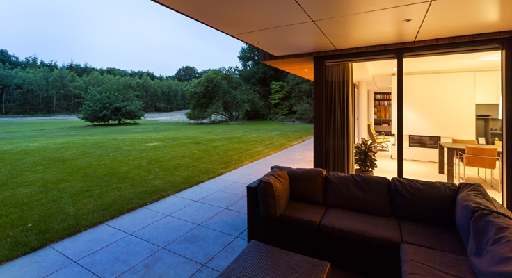 De ligging aan de rand van een open plek in het bos heeft ertoe geleid dat de gevels grenzend aan de noordelijke bosrand vrij gesloten zijn uitgevoerd. De gevels op het zuiden aan de tuinzijde zijn juist zo transparant mogelijk gemaakt. Hiermee heeft de woning een openbaar en privé gezicht gekregen en tevens wordt er optimaal gebruik gemaakt van de warmte van de zon. De toegepaste materialen geven het pand een naturelle uitstraling die past op deze bijzondere plek.