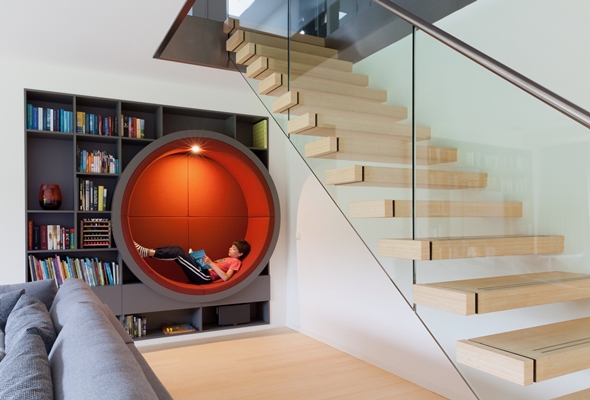 Het functionele en duurzame ontwerp is gebaseerd op de wensen van de opdrachtgevers, waarbij de kinderen allen een eigen plek hebben gekregen op de verdieping maar waarbij het contact tussen boven en beneden ook gewaarborgd blijft.