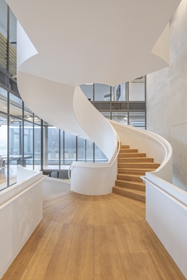 Mies Architectuur heeft hiervoor een dynamische en transparant gebouw ontworpen. Het doorlopende lijnenspel met zijn dynamische overstekken vangen de "fluid spaces" van de ruimtes op de verschillenden verdiepingen. Ook zijn de uitgangspunten van deze filosofie terug te vinden in de materialisatie en oriëntatie van het gebouw alsmede het interieur ontwerp en de volledige installatietechniek.