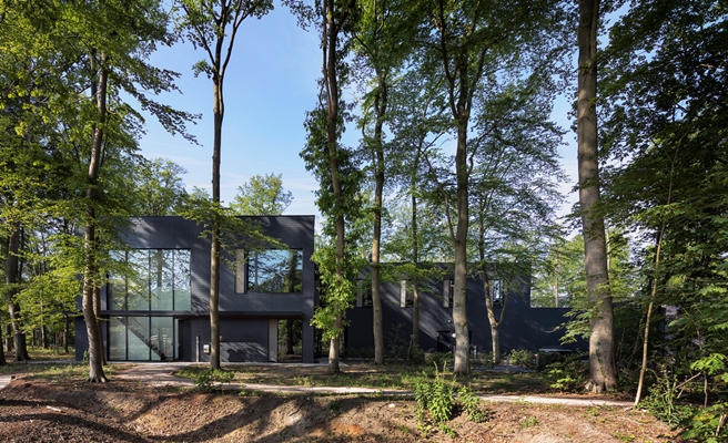 De verschillende bouwhoogten, grote ramen, terrassen en balkons geven het gebouw de uitstraling van een Hilversumse villa. De donkere leistenen en houten gevel zorgen ervoor dat de ambulancepost op een subtiele manier is ingepast in het omringende bos. Het gebouw is bijna te gast in het landschap.