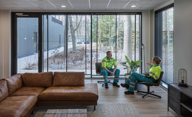 Het interieur wordt gekenmerkt door het gebruik van natuurlijke materialen. Deze materialen zorgen voor een aangename omgeving die een thuis biedt voor het ambulancepersoneel, 24 uur per dag, 365 dagen per jaar.