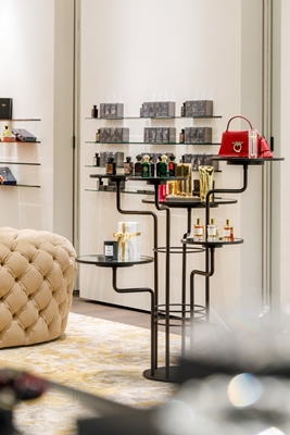 De producten, die uitsluitend van de allerhoogste kwaliteit zijn, gaven in het ontwerp aanleiding voor een hoge mate van verfijning. Met haptische materialen, de verfijning in de detaillering van de displays, de aandacht voor een uitgebalanceerd klimaat en de perfecte verlichting is een bijzondere omgeving vorm gegeven die in dienst staat van de serene beleving, teneinde de zintuigen aan te scherpen. De klant wordt uitegenodigd de tijd te nemen om te genieten van de meest exclusieve parfums, juwelen en accessoires. Dankzij het palet aan kleuren in de winkel, dat is samengesteld uit zachte grijs en bruintonen in combinatie met subtiele donkere contrasten, krijgen de producten zelf alle aandacht. Tevens geeft dit kleurenpalet de winkel een verfijnde uitstraling en een internationale, mondaine allure.