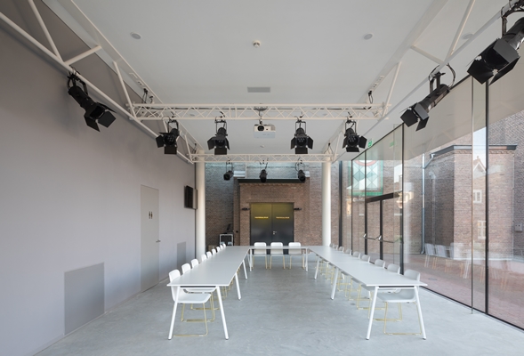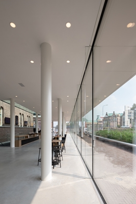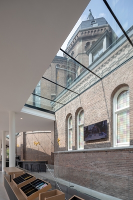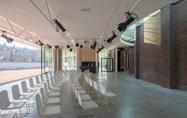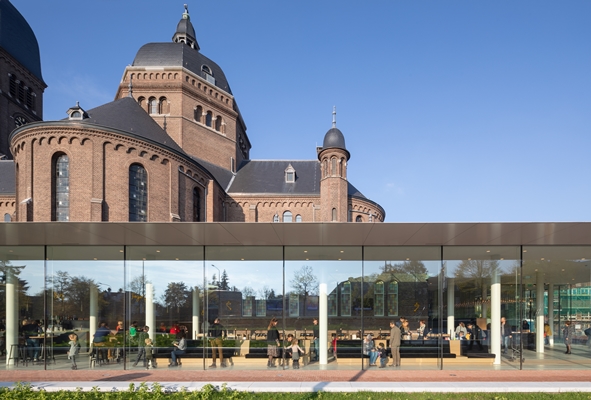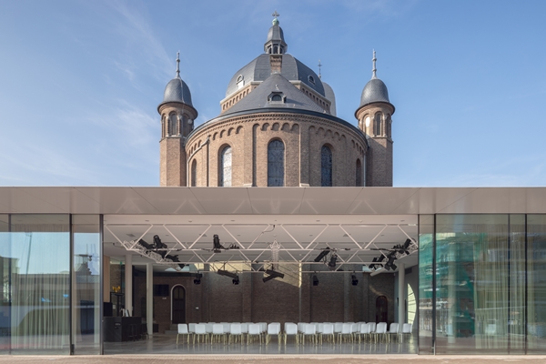 Een transparant en ingetogen paviljoen omarmt de bestaande OLV-kerk en versterkt daarmee het ensemble van kerk en pastorie. Door het transparante, horizontale karakter van de nieuwbouw met geringe hoogte Âblijven de historische gebouwen duidelijk waarneembaar en zal de kerk als decor fungeren. Exterieur van de kerk wordt interieur van het theatergebouw en versterkt de samenhang en ambiance. Het is een creatief samenspel tussen buiten- en binnenkant, openheid, transparantie en eigenzinnigheid. Er is een duidelijke scheiding gemaakt tussen front- en backstage. Publieks-, goederen-, artiesten- en medewerkersstromen kruizen elkaar niet, maar hebben wel een visuele relatie. Aan de Kasteeltraverse zijn de foyer en overige publieke functies ondergebracht. De pastorie is hierbij prominent aanwezig.