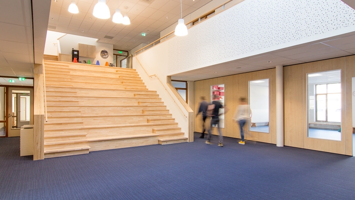 De zorgvuldige gekozen metselwerkverbanden, de luifels, de aangename materialen die mooi verouderen en een rijke detaillering doen denken aan de scholen uit de jaren 30. Ondanks de tijdloze uitstraling is het een eigentijds gebouw: Energiezuinig (BENG), voorzien van moderne technieken en een plattegrond die past bij het huidige onderwijs.