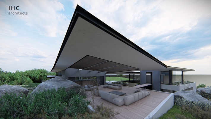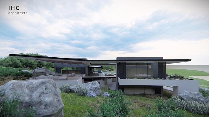 De minimalistische, industriële stijl wordt gekenmerkt door de slanke zwarte profielen die zwevende dakranden accentueren. Ook heeft IHC gebruik gemaakt van glas en ruw afgewerkte beton, wat zorgt voor een mix van pure en abstracte architectuur.