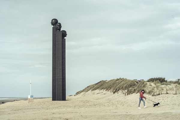 Op het strand van de Belgische plaats De Panne staan 'De Drie Wijsneuzen'. Dit kunstwerk, ontworpen door Harald Thys en Jos de Gruyter, is door ons geplaatst als deel van de
