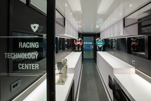 De uit twee verdiepingen bestaande zwarte mobiele reus heeft zijn vaste plek op de Europese MotoGP’s. Vanuit het R&D center op de begane grond worden de diverse REV’IT! rijders gedurende het gehele raceweekend voorzien van professionele track-side services. Ook wordt hier de belangrijke R&D data verzameld. Op de tweede verdieping bevindt zich het hospitality gedeelte. Een press box met panoramisch uitzicht, voor privégesprekken en -interviews met de rijders, en tevens loungeruimte waar zij zich privé terug kunnen trekken om even te ontspannen door bijvoorbeeld een motorracegame te spelen tegen elkaar.