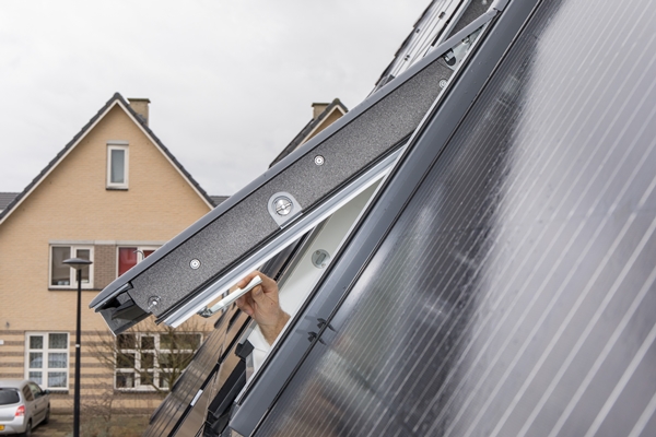 in het dakraam verwerkt. Het resultaat mag er zijn, wat mij betreft had het dak niet mooier gekund.”