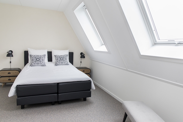 . Met twee dakramen per woning werd de daglichtopbrengst in de ruimten achter het dak gegarandeerd. Thom Grevengoed: “VELUX heeft uiteindelijk speciaal voor ons een dakraam gemaakt dat aan alle wensen voor dit project voldoet, de GGL PK08 2068Q. We hebben regelmatig met elkaar om de tafel gezeten om tot deze special te komen. Zo was er een aanpassing nodig om het dakraam aan te laten sluiten op de door ons gekozen GSE-matten die onder de pv-panelen zijn bevestigd. Er is, in het kader van de luchtdichtheid, veel aandacht geweest voor de detailleringen. Alles moest natuurlijk perfect op elkaar aansluiten. De dakramen waren al standaard voorzien van buitenzonwering, wat een positieve bijdrage leverde aan de EPC-berekening. Ook ben ik gecharmeerd van de manier waarop VELUX haar