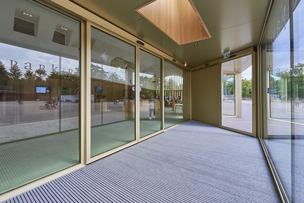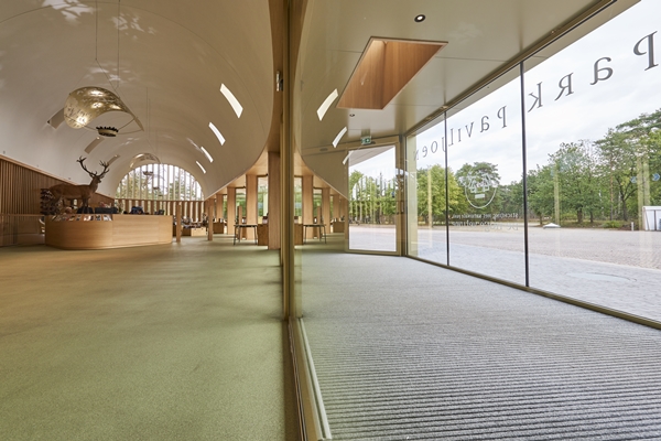 Onlangs is het nieuwe Park Paviljoen van het Nationale Park De Hoge Veluwe door Koning Willem-Alexander geopend. Het Park Paviljoen fungeert als een plek waar bezoekers elkaar treffen en samen de schoonheid van de natuur, de kunst en de architectuur kunnen beleven. In het multifunctionele gebouw zijn een restaurant, een informatiecentrum, zalen en de parkwinkel gehuisvest. Voor de entree is door architect Monadnock te Rotterdam gekozen voor de emco entreemat Diplomaat 522 R met grijze inlage en zwart geanodiseerde aluminium profielen.