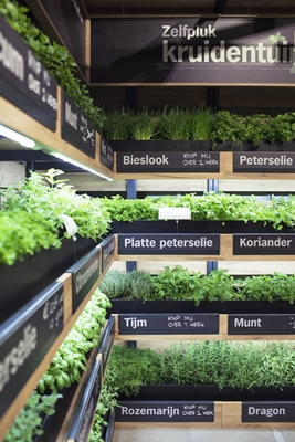 De smaak van verse kruiden uit de tuin, gecombineerd met het gemak van de supermarkt. De grootste Nederlandse supermarktketen, Albert Heijn, gaat het experiment aan, met een door studiomfd slim ontworpen Zelfpluk kruidentuin. Hier kan de klant kruiden plukken in een mini-kas waar kruiden opgekweekt worden gedurende de laatste weken van het groeiproces.