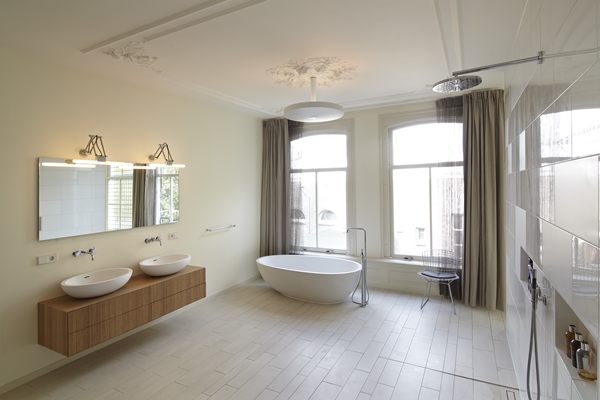 De architecten van Hoope+Plevier hebben dit statige herenhuis aan de rand van het Vondelpark volledig gerenoveerd, uitgebreid en gemoderniseerd. Het exterieur is fraai gerestaureerd door de originele details in ere te herstellen en binnen werd de gehele vloer in de kelder verlaagd om een thuisbioscoop te creëren. De kelder werd ook vergroot aan de achterzijde van de woning met een eigentijdse uitbreiding die nu dienst doet als kantoor en gastenverblijf. De badkamer is volledig naar wens van de klant ingericht met VOLA kranen als passende eye-catchers in de smaakvol ingerichte ruimte.
