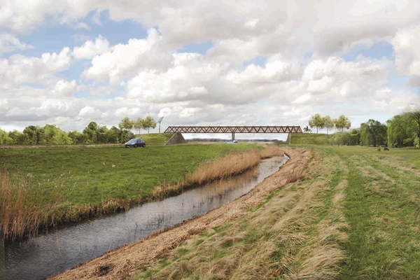 De walkin’ bridge, of de Leendert van der Meulenbrug zoals de brug nu heet, is een getransformeerde spoorwegbrug. Alle ontwerpuitdagingen zijn in één constructief element opgelost. De verlopende zig-zag-lijn benadrukt nog eens extra de rankheid van de brug.
