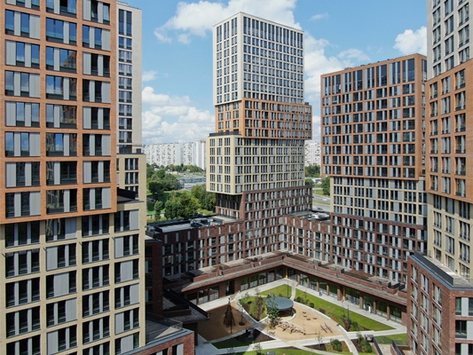 In veel van die projecten kiest men aan de gevels voor baksteen. Zo ook in Vander Park. Baijense: “Baksteen wordt door opdrachtgevers geassocieerd met kwaliteit. Van het beton en stucwerk, voorheen zo beeldbepalend in de Russische woningarchitectuur, heeft men nu een afkeer.”