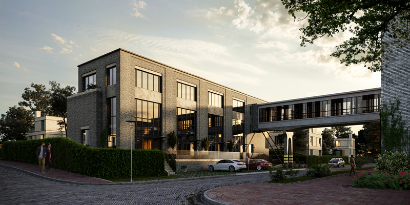 Het nieuwe Bruggebouw heeft onder invloed van ‘gebiedseigen kenmerken’ vorm gekregen. Het is zakelijk, eenvoudig en functioneel. Bij de start van ontwerp lag het woonniveau van het Bruggebouw een meter verhoogd ten op zichten van het omringende maaiveld. Door aan de straatzijde een loadingdock te introduceren met daarvoor het parkeren is dit hoogteverschil overbrugd, ontstaat er een ‘leef’ kelder en wordt er een subtiele verwijzing gemaakt naar het oude fabrieksmatige karakter van het terrein.